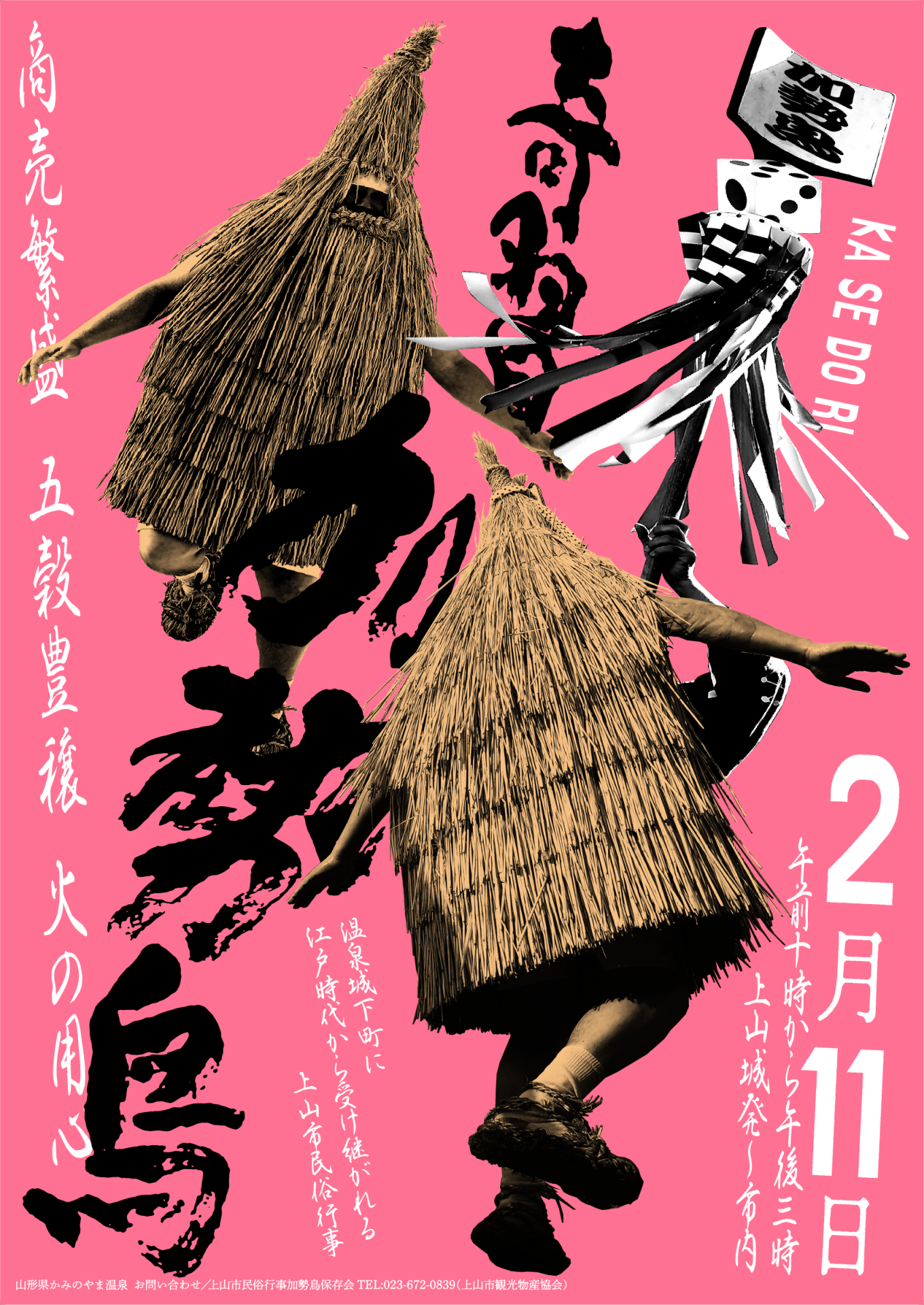 加勢鳥は、五穀豊穣・家運隆盛をもたらす歳神様の来訪行事で、「小正月に遠い土地からやってくる神の声によって一年の豊かさを祝う」という信仰から生まれたと考えられ、「御前カセ」と「町方カセ」が行われていました。